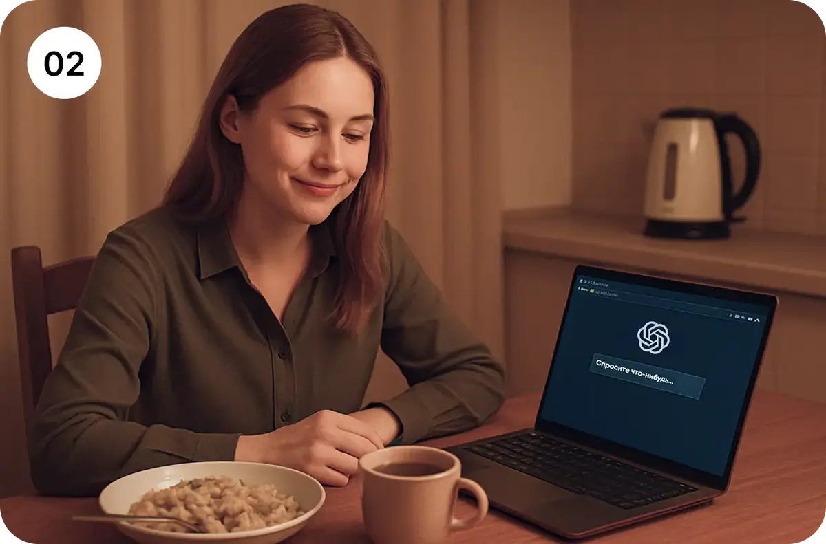 Ты садишься на кухне, открываешь ноутбук или телефон. Открываешь нейросеть.